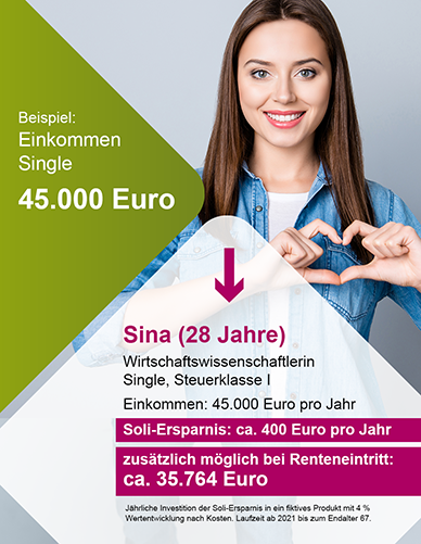 Daher unser Tipp: Verringere jetzt deine Rentenlücke um deine Soli-Ersparnis - und profitiere später von einer aufgebesserten Rente.